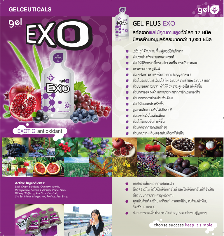 EXO อาหารเสริมเจล สารต้านอนุมูลอิสระ1000กว่าชนิด เห็นผลไวกว่า 5 เท่า นิยมใช้กันมากกว่า 60 ประเทศ